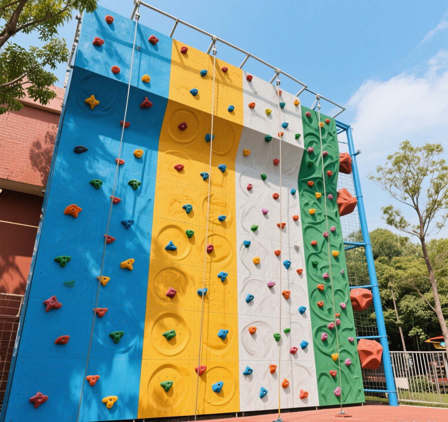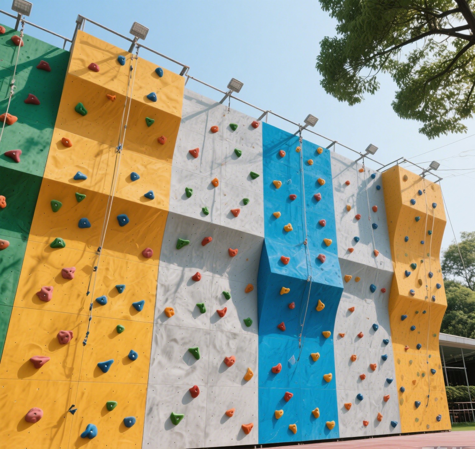 中型攀巖墻常見(jiàn)于學(xué)校、社區(qū)活動(dòng)中心、中等規(guī)模的攀巖館等。以室外玻璃鋼材質(zhì)的中型攀巖墻為例,每平方米價(jià)格約 2000 元,一面 50 平方米的攀巖墻,材料費(fèi)用約為 100000 元??紤]到中型攀巖墻可能需要更豐富的攀巖點(diǎn)設(shè)計(jì)、更完善的安全設(shè)施以及相對(duì)復(fù)雜的安裝施工,假設(shè)安全設(shè)施費(fèi)用為 20000 元,安裝施工費(fèi)為 15000 元,那么總造價(jià)大概在 135000 元左右。若采用混凝土墻面,每平方米按 2500 元計(jì)算,材料費(fèi)用就高達(dá) 125000 元,加上其他費(fèi)用后,總造價(jià)可能超過(guò) 160000 元 。?